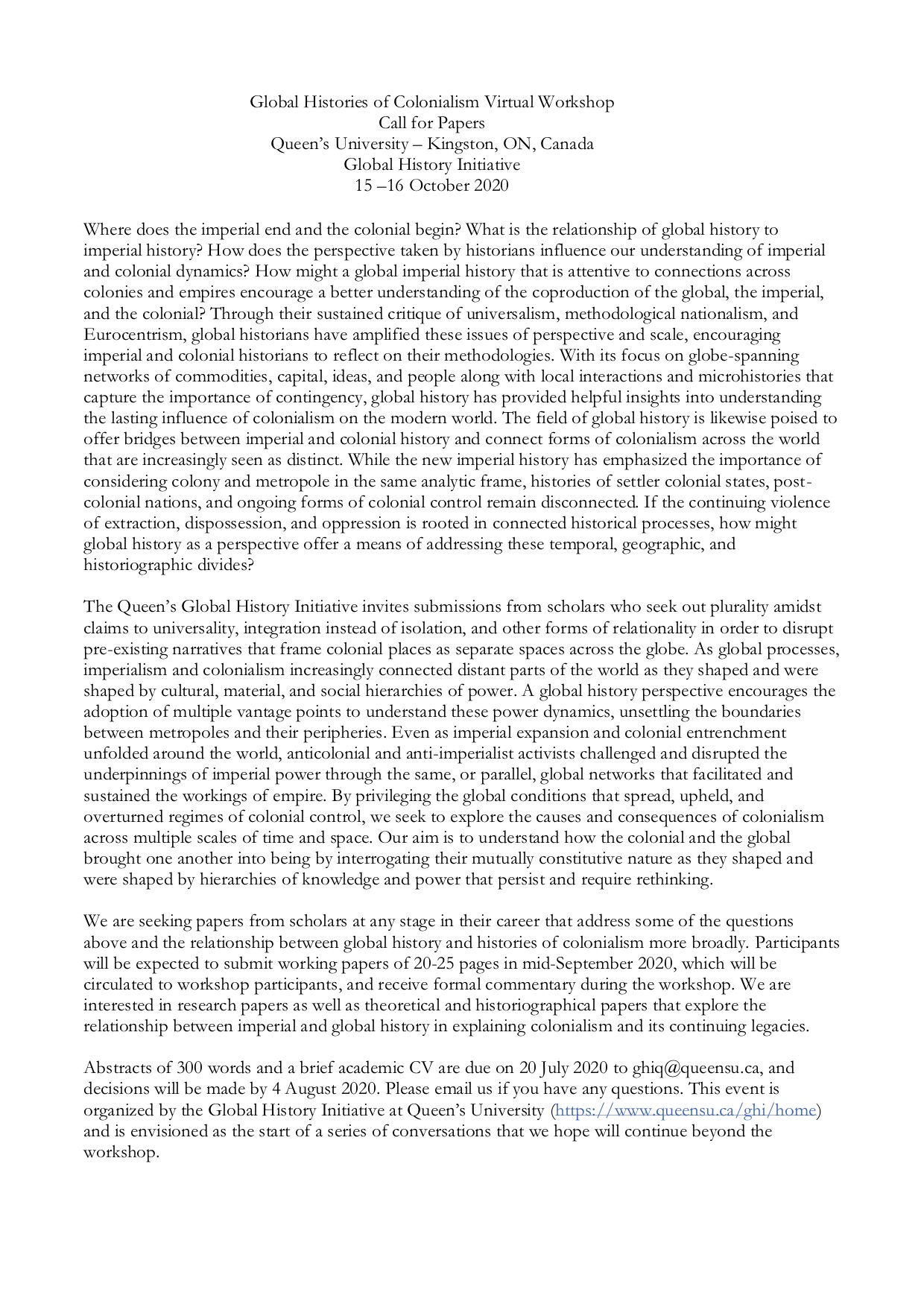 CFP for Queen’s Global History Initiative (1)